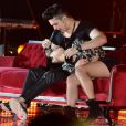 Luan Santana faz carinho em fã durante gravação do terceiro DVD em São Paulo