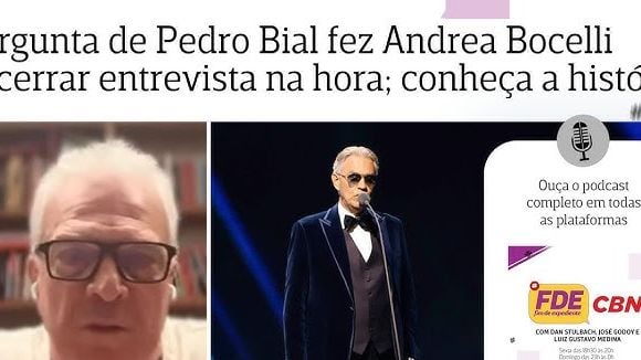 Segundo Bial, Bocelli simplesmente levantou e encerrou a entrevista. "Cara, ele levantou e foi embora. Desligou, porque era remoto, ele estava na Itália."