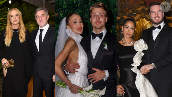 Angélica e Luciano Huck prestigiaram o casal. A apresentadora elegeu um look sóbrio e sexy, com um recorte que deixou a perna à mostra. Com Rodrigo Faro, Vera Viel elegeu um vestido em tom vinho, de modelagem assimétrica e detalhe de drapeado escultural na lateral da saia.
