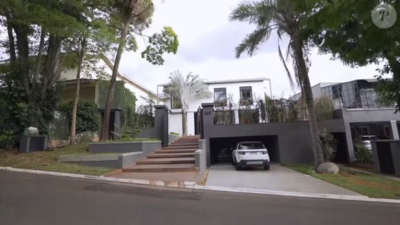 A mansão tem ainda piscina e hidromassagem, além de muito verde na área externa, com direito a palmeira. Na parte de dentro, uma espaçosa sala de lazer, mesa para oito lugares, fogão de indução e espaço gourmet em ambientes bem iluminados e arejados e decoração em tons neutros.