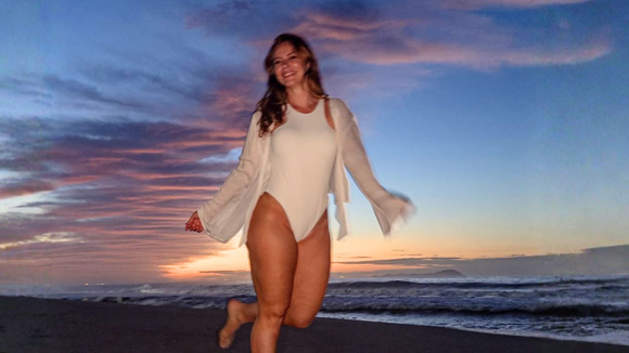 Isadora Cruz, namorada do atleta Lucas Pinheiro Braathen, aposta em biquíni bicolor e exibe estilo elegante durante tarde de sol na praia; atriz está no ar como Agrado Garcia na novela...